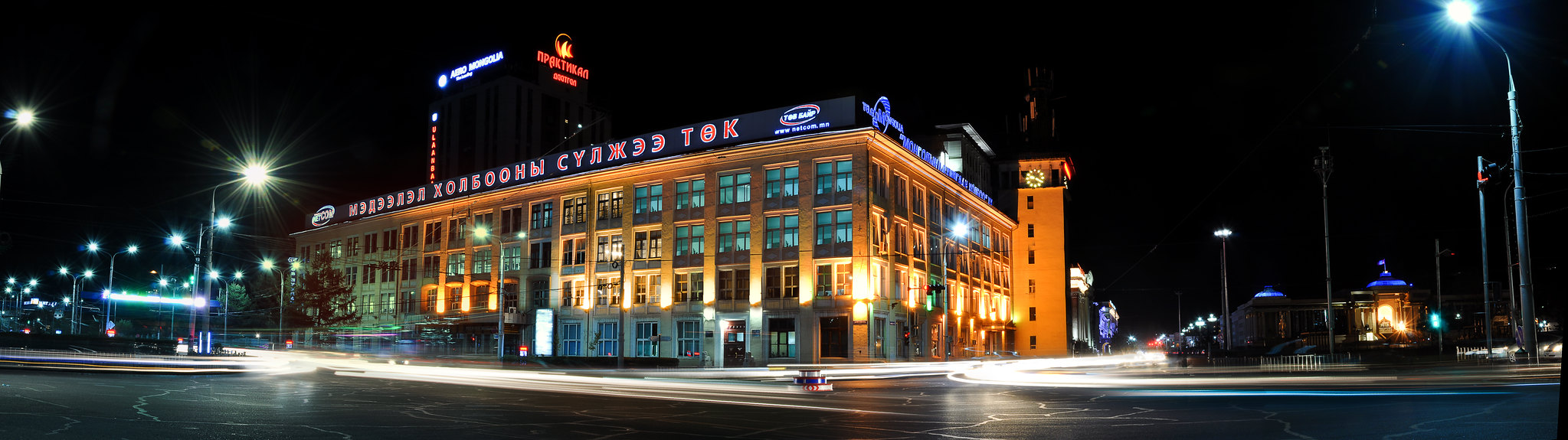 スフバートル広場の南西角に立つ、歴史を感じさせる重厚な建物です。